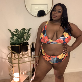 Shein has honestly became one of my go to sites for on trend plus size bathing suits. I love the fact that I can get regular bikini and straight sized styles in MY SIZE. So often you find Tank-inis and all in one bathing suits with those dreadful built in slip/ skirt situations. Personally I hate them! LIKE GIIIRRRLLL it's 2021! We're not hiding our bawdy from no one and if they do want to see tell them to close their eyes! PUURRRiod!!